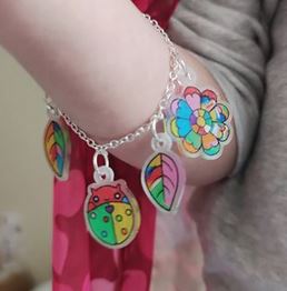 Un pendentif fleuri et un bracelet en plastique fou chez 3 princesses à la maison sur Instagram