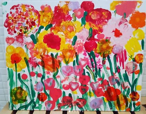 Pour finir, quand les fleurs eurent fini d’éclore, BidouBoy s’est amusé à décoller toutes les gommettes et à froisser toutes les fleurs. Heureusement que ce n’était pas des vraies !