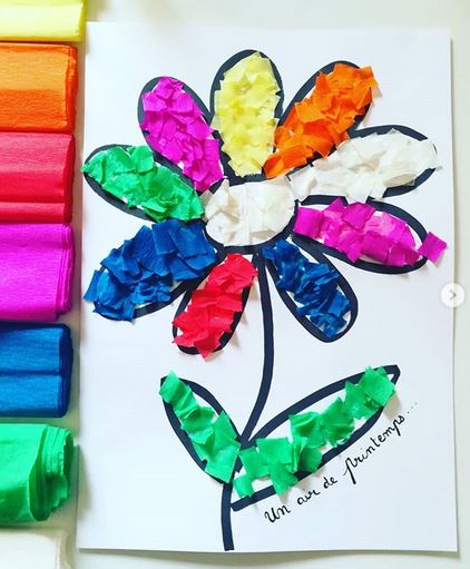De jolies abeilles, une invitation à jouer fleurie, des mandalas, une fleur en crépon et une chasse aux trésors chez Voici mes p’tits secrets sur Instagram