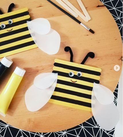 De jolies abeilles, une invitation à jouer fleurie, des mandalas, une fleur en crépon et une chasse aux trésors chez Voici mes p’tits secrets sur Instagram