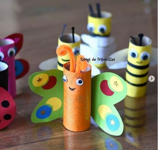 Des insectes en rouleau en papier toilettes et en peinture au bouchon, et un jeu de société chez Claire – Rêves de fripouilles sur Instagram et sur son blog