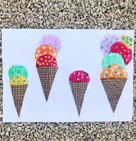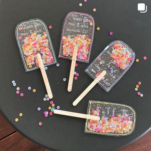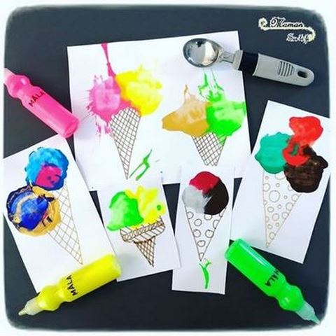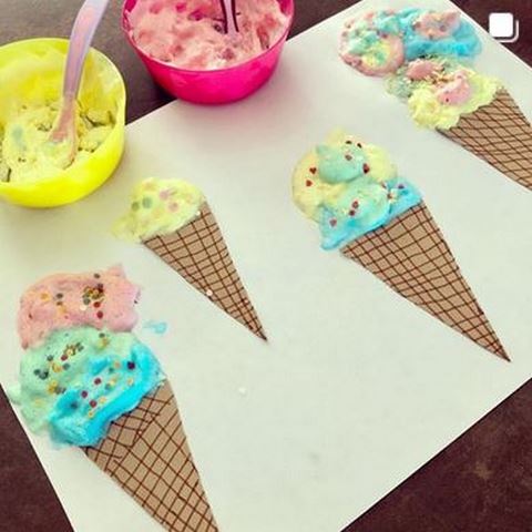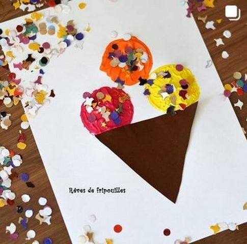 Des glaces à la peinture gonflante et d’autres en peinture et confettis chez Claire – Rêves de Fripouille sur Instagram et sur son blog