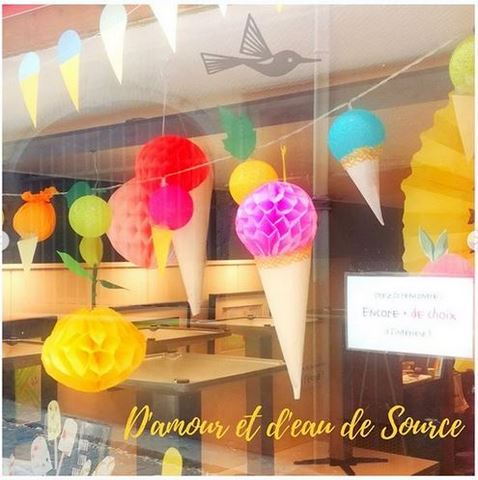 Diverses glaces et une décoration de vitrine chez D’amour et d’eau de source sur Instagram