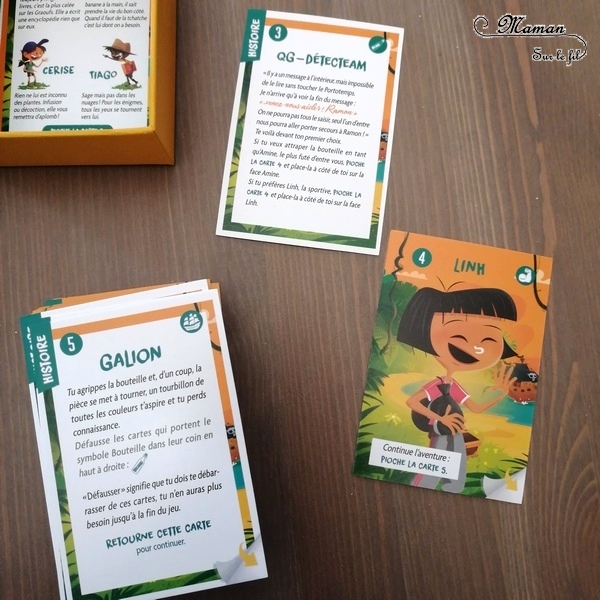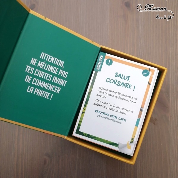 J’ai découvert ces jeux de cartes récemment et nous sommes fans du concept. Il s’agit de jeux de cartes à choix qui permet, selon nos décisions, de créer une histoire et de remplir des missions. Le premier est conseillé à partie de 8 ans (il faut un niveau de lecture correct) et est sur le thème des pirates. Le second est conseillé à partir de 10 ans (les énigmes sont un peu plus compliquées) et est sur le thème de l’espace. Pour utiliser ces jeux-là en voiture, un plateau de voyage est conseillé.