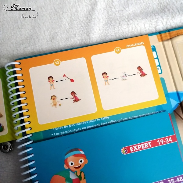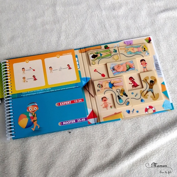 Les différents défis (partagés en 4 niveaux de difficulté) sont reliés sous forme de carnet sur le côté et les règles du jeu imprimées sur la couverture. Ainsi, seules les pièces magnétiques du jeu sont mobiles.