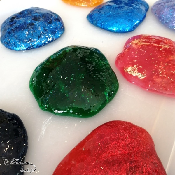 Ensuite, nous avons utilisé divers types de paillettes. Les effets obtenus sont vraiment différents d’un slime à l’autre.