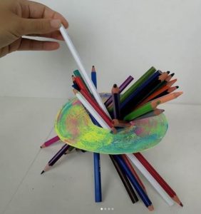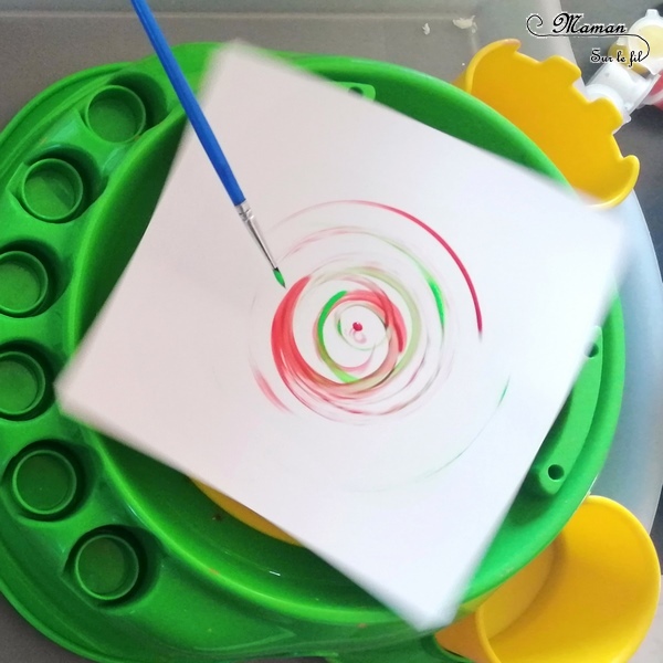 Nous faisons régulièrement cette activité avec des feutres ou des stylos. Pour ce faire, nous utilisons le tour de potier contenu dans ce kit… Mais, vous pouvez aussi utiliser la roue d’une voiture télécommandée, un hand spinner ou encore un plateau tournant.