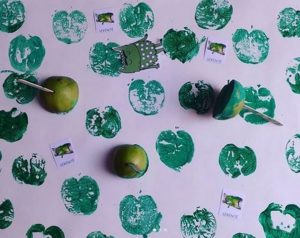De la peinture avec des pommes et des pailles chez Maman Flo sur Instagram