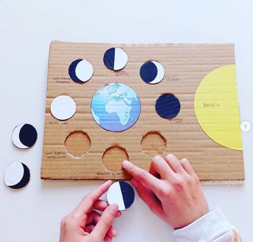 Un puzzle des phases de la lune et deux créations autour du système solaire chez Anis et Compagnie sur Instagram