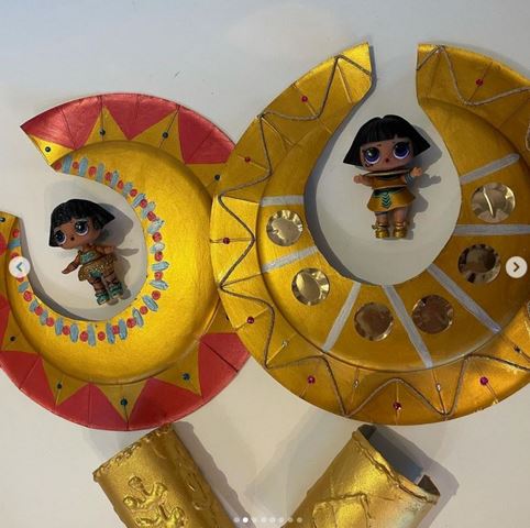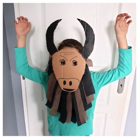 Un cheval de Troie, des accessoires de Dieux, un masque Minotaure et un monstre des lettres chez Maman Luju sur Instagram