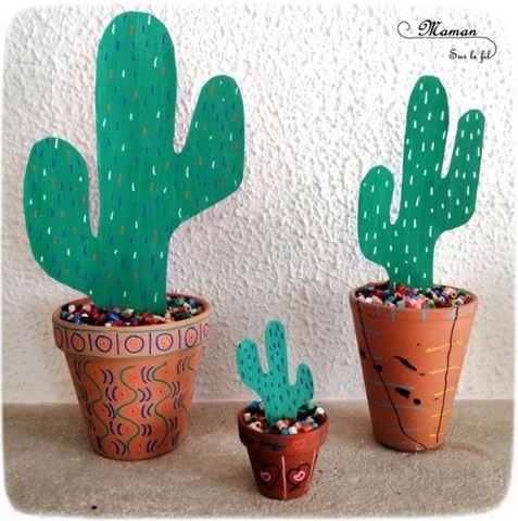 - Des cactus en carton dans leur pot décoré