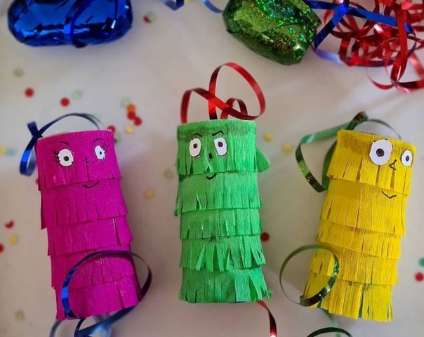 Nous avions prévu de faire des mini pinatas avec du crépon coupé et collé comme celles de Kiddozadventures mais le temps nous a manqué. Nous avons donc simplifié l’idée et nous avons récupéré la maman de notre famille Cactus en rouleaux de papier toilette. Tous les détails pour la fabriquer sont ici.