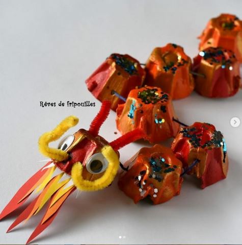 Une carpe Koï, des personnages chinois, des dragons, un clown et un cœur Mosaïques chez Maman Flo sur Instagram