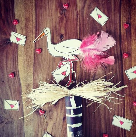 Une cigogne de l’amour, une couronne Cœur et un Bonhomme Cœur tout en récup’ Fast Food chez What to do with Rase-Moquette sur Instagram