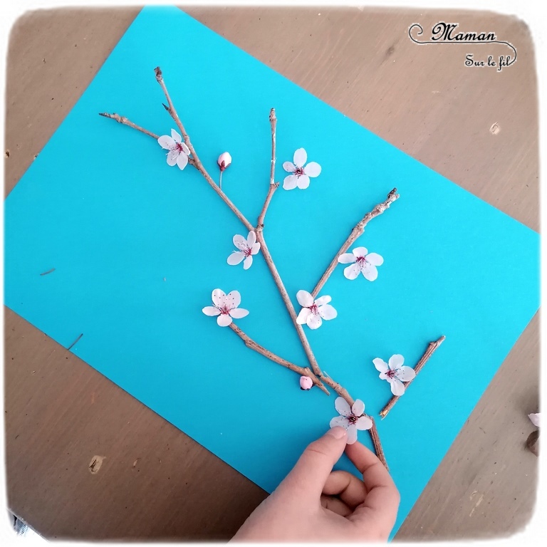 Pour ce nouveau Rendez-Vous Sur Le Fil, le thème était “Spring is coming…” en référence à l’arrivée imminente du printemps. J’ai pu voir fleurir de belles créations et voler de jolis insectes. De notre côté, en lien avec notre thème du moment, nous avons créé une branche de cerisier japonais en origami. Nous en avions fait une autre récemment en Land Art.