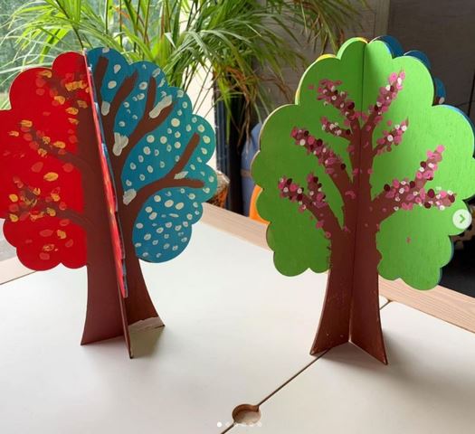 Des arbres des 4 Saisons, un bac sensoriel et des fleurs en papier chez Agrisouri 3 Souris libres – IEF sur Instagram