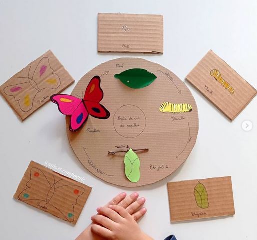 Des colombes façon Picasso, le cycle de vie du papillon en carton, un essaim à tisser et de jolis nichoirs chez Anis et Compagnie sur Instagram