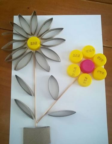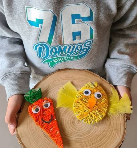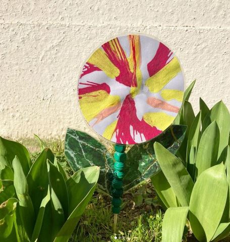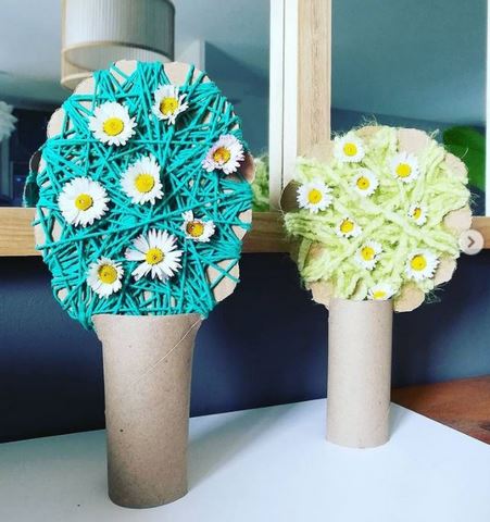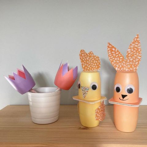 Des tulipes, un poussin et un lapin en pots de yaourt et une fleur à l’essoreuse chez Deux petits trésors sur Instagram
