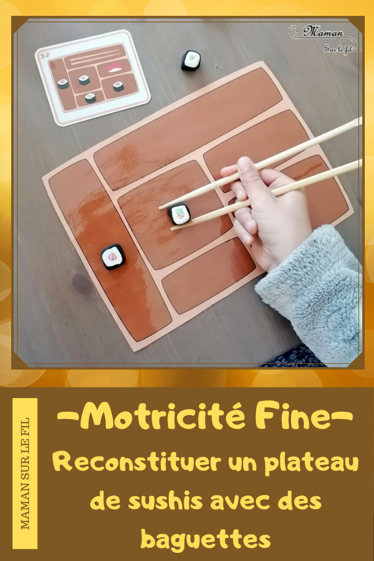 Pour clôturer notre voyage au Japon, nous avons abordé la gastronomie avec un jeu DIY : Le plateau de sushis. Je vous présente une version à manipuler avec des baguettes et une version à imprimer pour les plus jeunes.