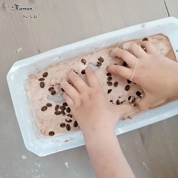 Avec ma grande, nous avons passé beaucoup de temps à patouiller et profiter de l’odeur ambiante… C’est vraiment une texture étonnante, une expérience sensorielle qu’il faut avoir testée au moins une fois dans sa vie !