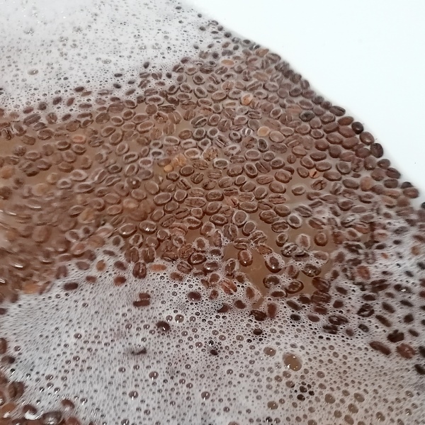 Puis, nous avons longuement observé les motifs créés avec la mousse et les grains de café. Nous avons trouvé que cela ressemblait au pelage des léopards ! Pour finir, avant de vider ce bain olfactif du Kenya, nous avons enlevé les grains de café avec les passoires.