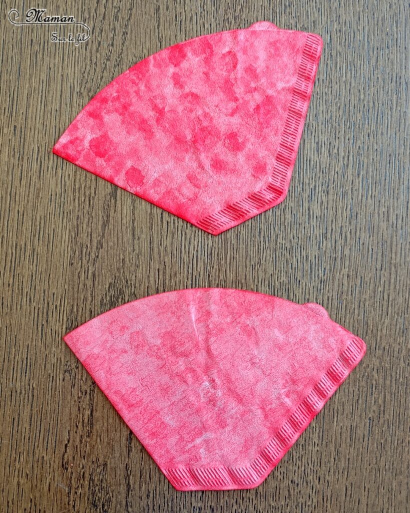 Vous trouverez d’autres idées autour des fruits et légumes ici et d’autres activités avec des filtres à café là.