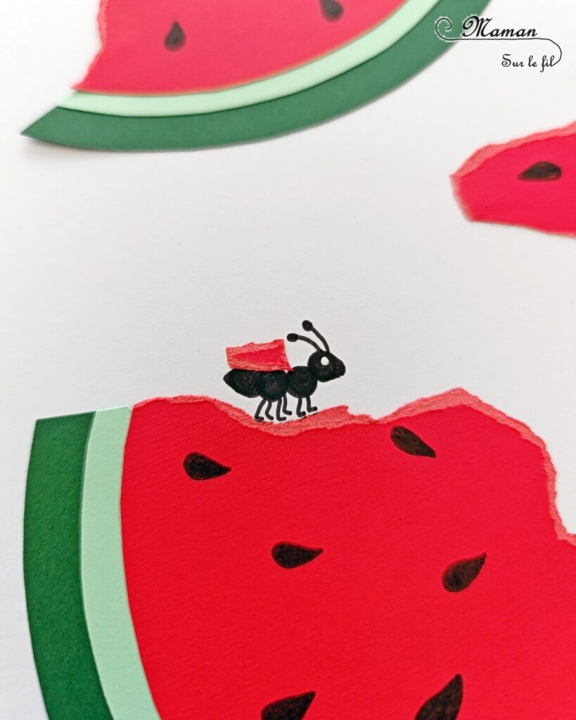 Pastèque en papier déchiré mangée par des fourmis {Activité}